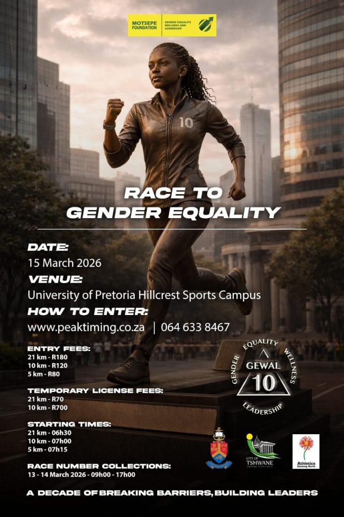 With a little more than 1 week to go to the Motsepe Foundation 2026 Race to Gender Equality, it’s your turn to be part of the movement. Taking place on Sunday, 15 March at the University of Pretoria Hillcrest Sports Campus, the Motsepe Foundation will mark ten years of advocacy through its Gender Equality, Wellness and Leadership (GEWAL) Centre.
