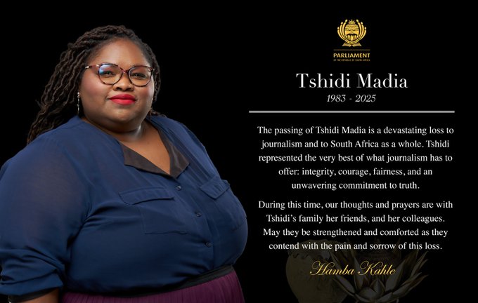 Communications and Digital Technologies, Ms Khusela Sangoni Diko, has noted with profound sadness the passing of political journalist and associate editor at EWN Ms Tshidi Madia.